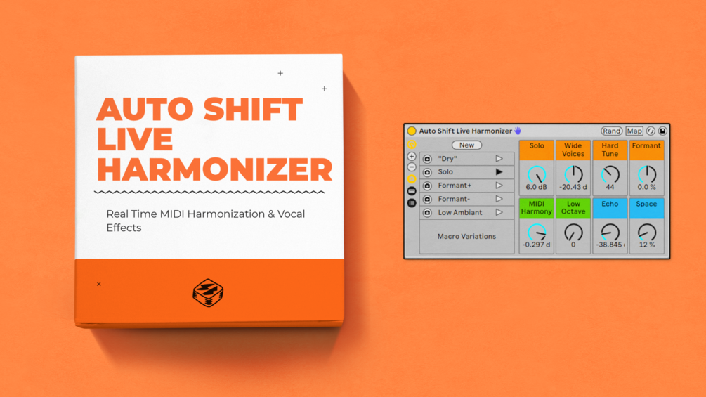 Live 12.1 now puts real-time pitch correction within reach for anyone working with vocals. Select a scale, or define your own, to keep every note in tune with your track. Play and make harmonies from any monophonic signal using Auto Shift’s MIDI sidechain. Add vibrato, and modulate your sound using MPE or the device’s LFO.